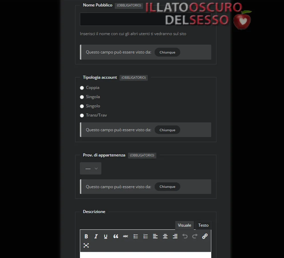 Il NOME PUBBLICO è il nome con cui gli altri utenti ti vedranno nella lista utenti.